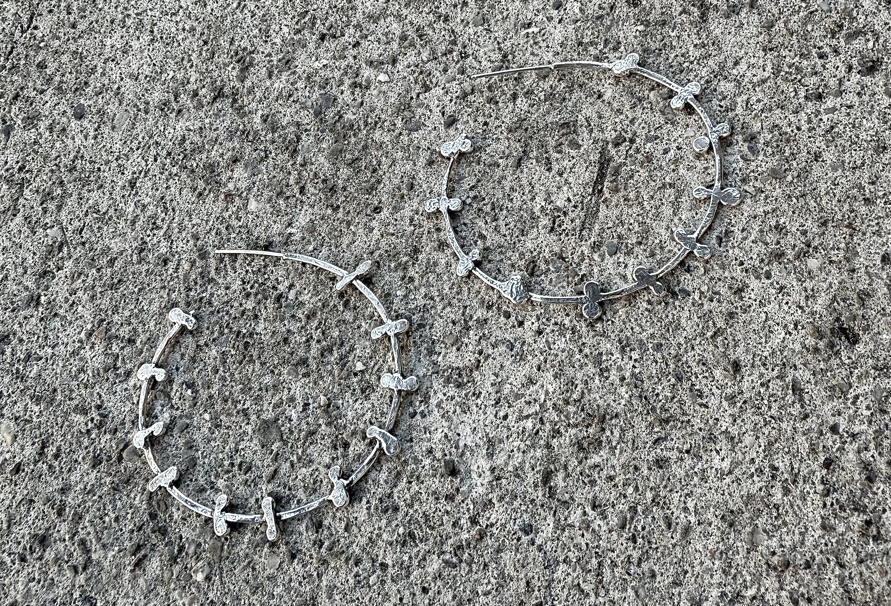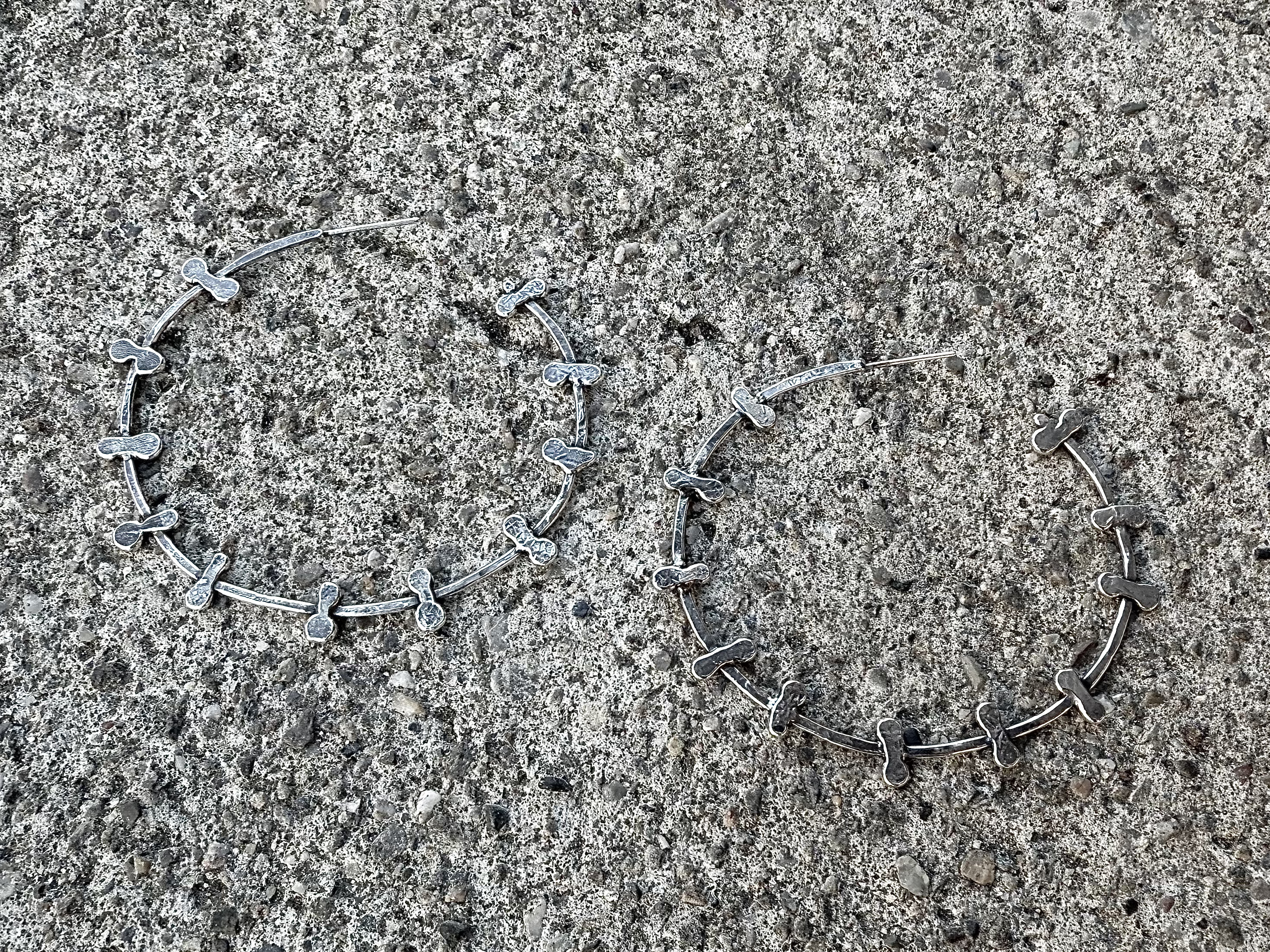 Hand fabricated silver bone link chain